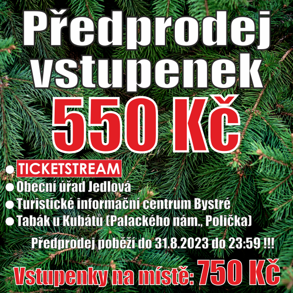 Rovněž v prodeji na obecním úřadě v Jedlové, v Informačním centru v Bystrém nebo v Poličce v Tabáku U Kubátů na náměstí, dále na všech prodejních místech společnosti Ticketstream