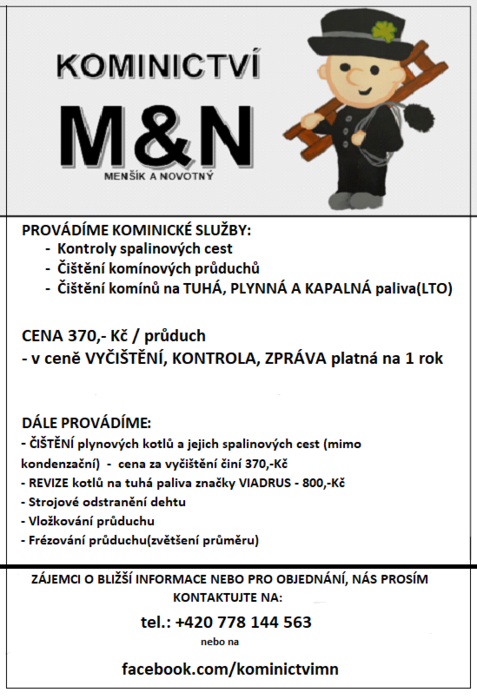 V pondělí dne 25.10.2021 bude v obci Jedlová provádět kominické služby společnost Kominictví M&N a dne 3.11.2021 bude v obci pro občany k dispozici firma TOPENÁŘSKÝ SERVIS s.r.o. V případě zájmu o tyto služby, naleznete více informací v přiložených letácích níže.